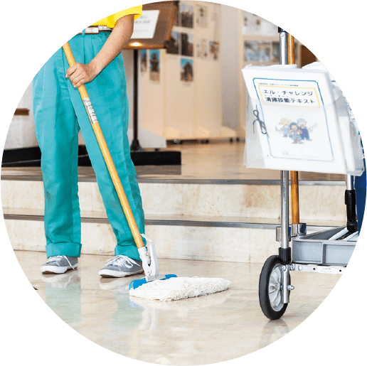 一般社団法人エル・チャレンジの設置母体である「大阪知的障害者雇用促進建物サービス事業協同組合(愛称:エル・チャレンジ)」は、1999年に障がい者の就労日本一を実現するために、大阪府内の障がい者4団体が立ち上げた団体です。大阪府内の公共施設を清掃訓練の場として活用することで、障がいのある人が社会に出ていく大きなきっかけを作ることができました。おかげさまで、エル・チャレンジの清掃訓練を経て、社会へ巣立った障がいのある人も、900名を超えることとなりました。